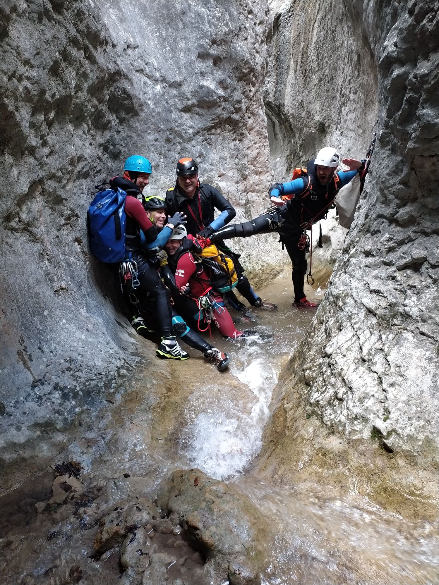 Pêle-mêle ci-dessous quelques souvenirs de la semaine en images, où différents types de canyons ont pu être descendus, aussi bien aquatiques (Neste de Saux, Miraval) que verticaux (Gallines, Foz de la Canal, Sorrosal, …).
